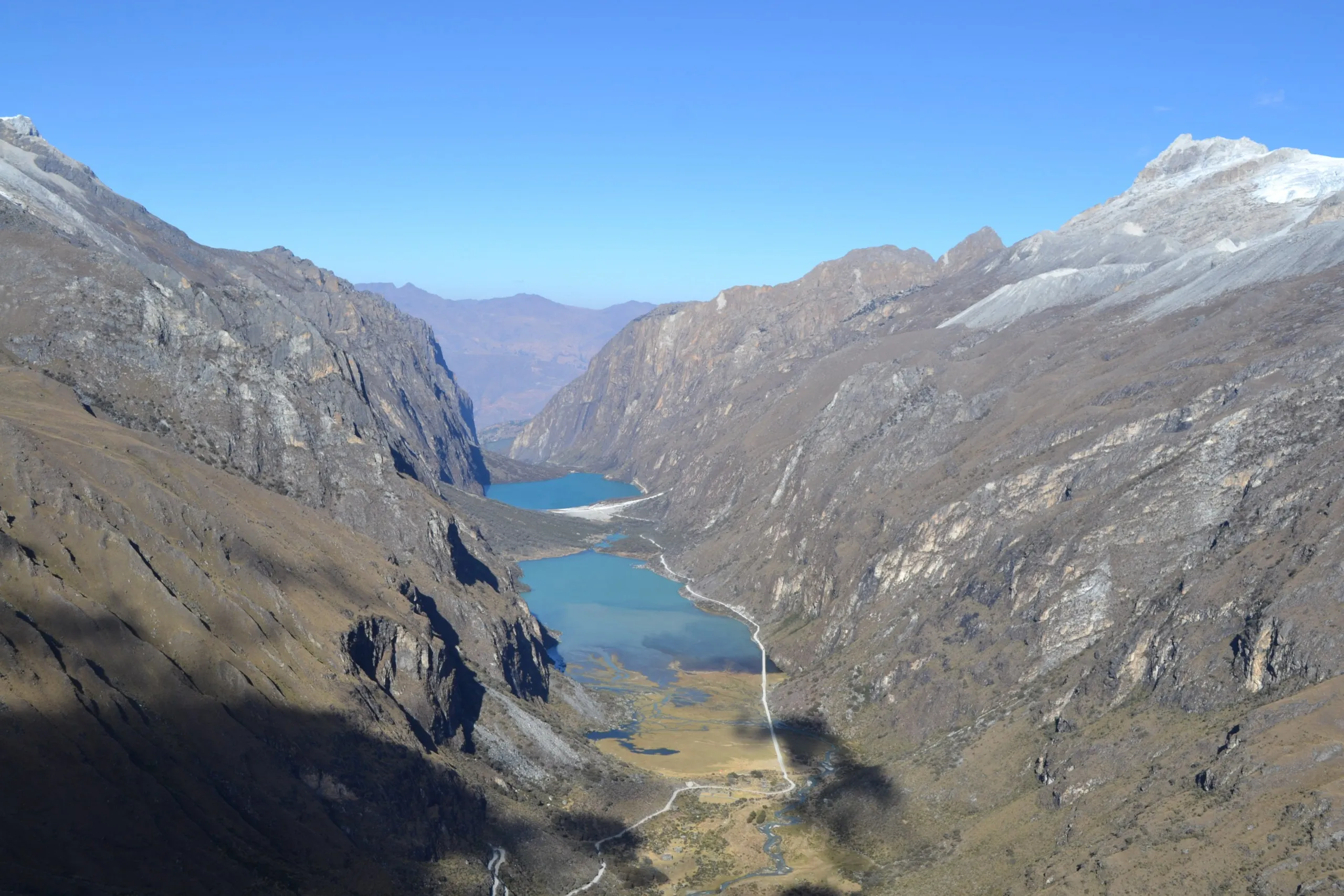 Partimos temprano en nuestro transporte rumbo a las alturas de los Andes. En el trayecto, cruzaremos el Paso Portachuelo (4,767 m), con vistas impresionantes de la Laguna Llanganuco, antes de llegar al punto de inicio de nuestra caminata.